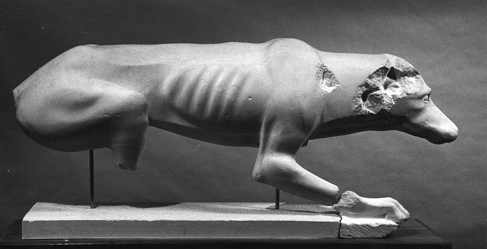 Zum Welthundetag am 10.10. zeigen wir Ihnen den Abguss einer Hundestatue (Inv. 1086 a, b). Sie wurde um 520 v. Chr. aus Marmor geschaffen und auf der Akropolis von Athen nördlich des Parthenons gefunden. Das Tier zeigt einen Jagdhund mit einer langen Schnauze und schlankem Körperbau. Seine Muskeln sind gespannt – bereit seine Beute zu fassen.